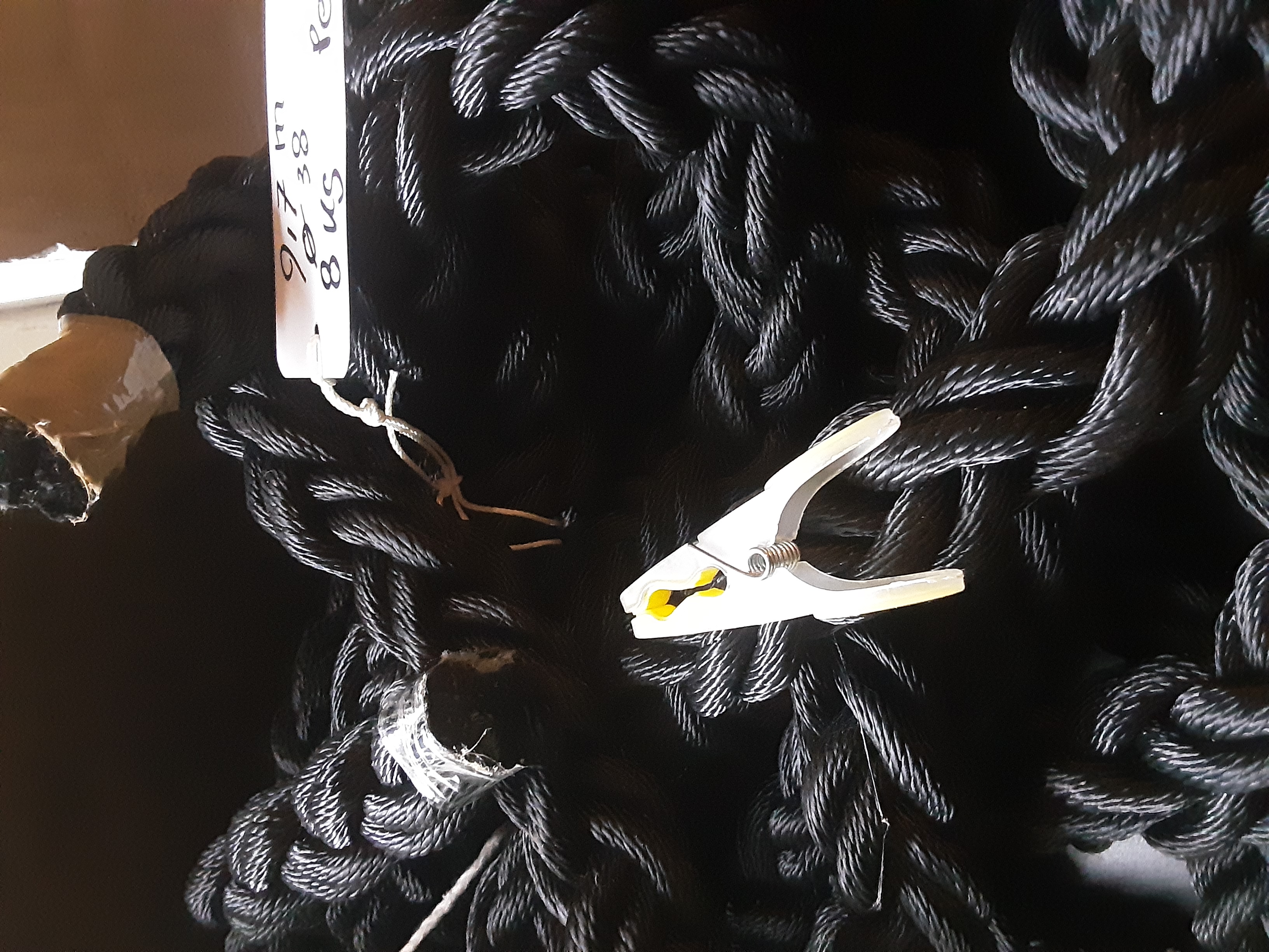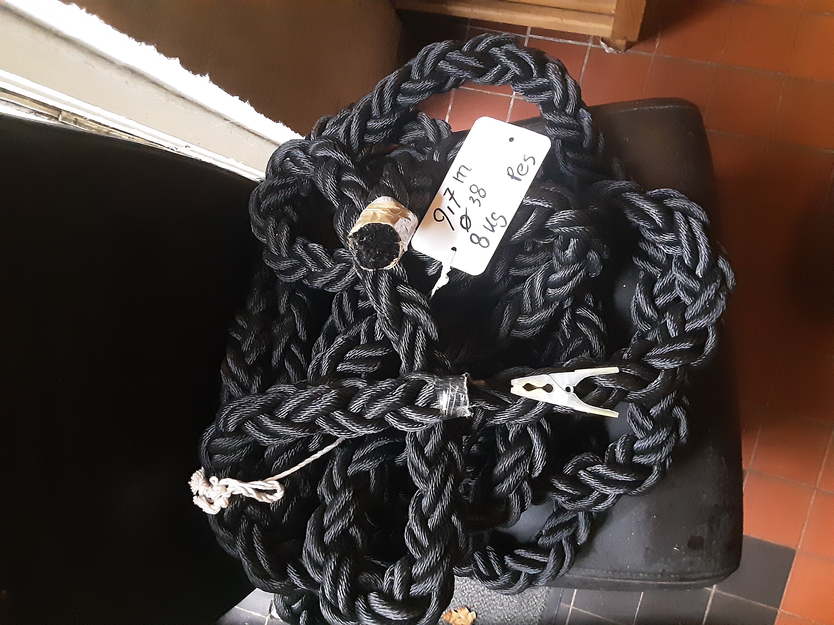 Pikzwart touw, 8 strengs gevlochten.